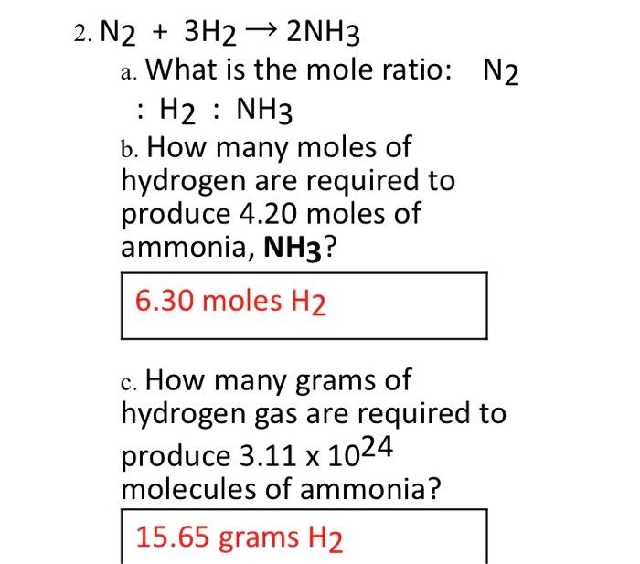 Solved 2 N2 3h2 2nh3 A What Is The Mole Ratio N2 H2 Chegg Com